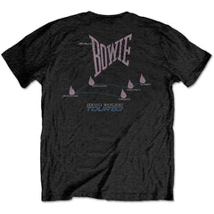 An official licensed Unisex Tee featuring the David Bowie '83' Tour' design motif. This high quality garment is available in a black colourway.Here's some more stuff you might like: