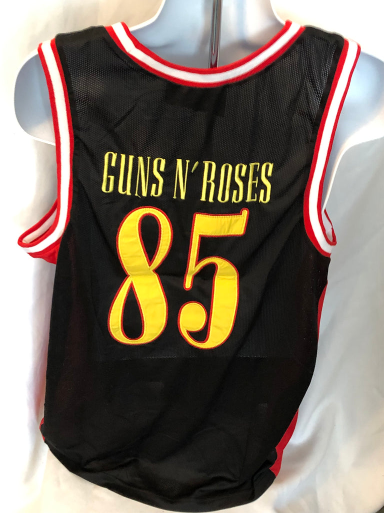 An official licensed Guns N Roses - RARE - 85 Logo Embroidered Basketball Jersey