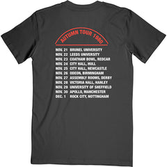 An official licensed Iron Maiden Unisex Tee featuring the 'Autumn Tour 1980' design motif. This high quality t-shirt design is available in the black colourway.