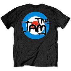 An official licensed unisex soft-style cotton Tee featuring the Jam 'Target Logo' design motif. This high quality t-shirt is available in a black colourway.