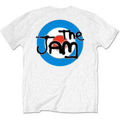 An official licensed unisex soft-style cotton Tee featuring the Jam 'Target Logo' design motif. This high quality t-shirt is available in a white colourway.