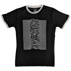 An official licensed Joy Division Unisex Ringer T-Shirt featuring the 'Unknown Pleasures' design motif. This high quality Ringer T-Shirt is available in a black colourway.