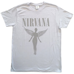 An official licensed Nirvana Unisex T-Shirt featuring the 'In Utero Tour' design motif. This high quality T-Shirt is available in a white colourway.