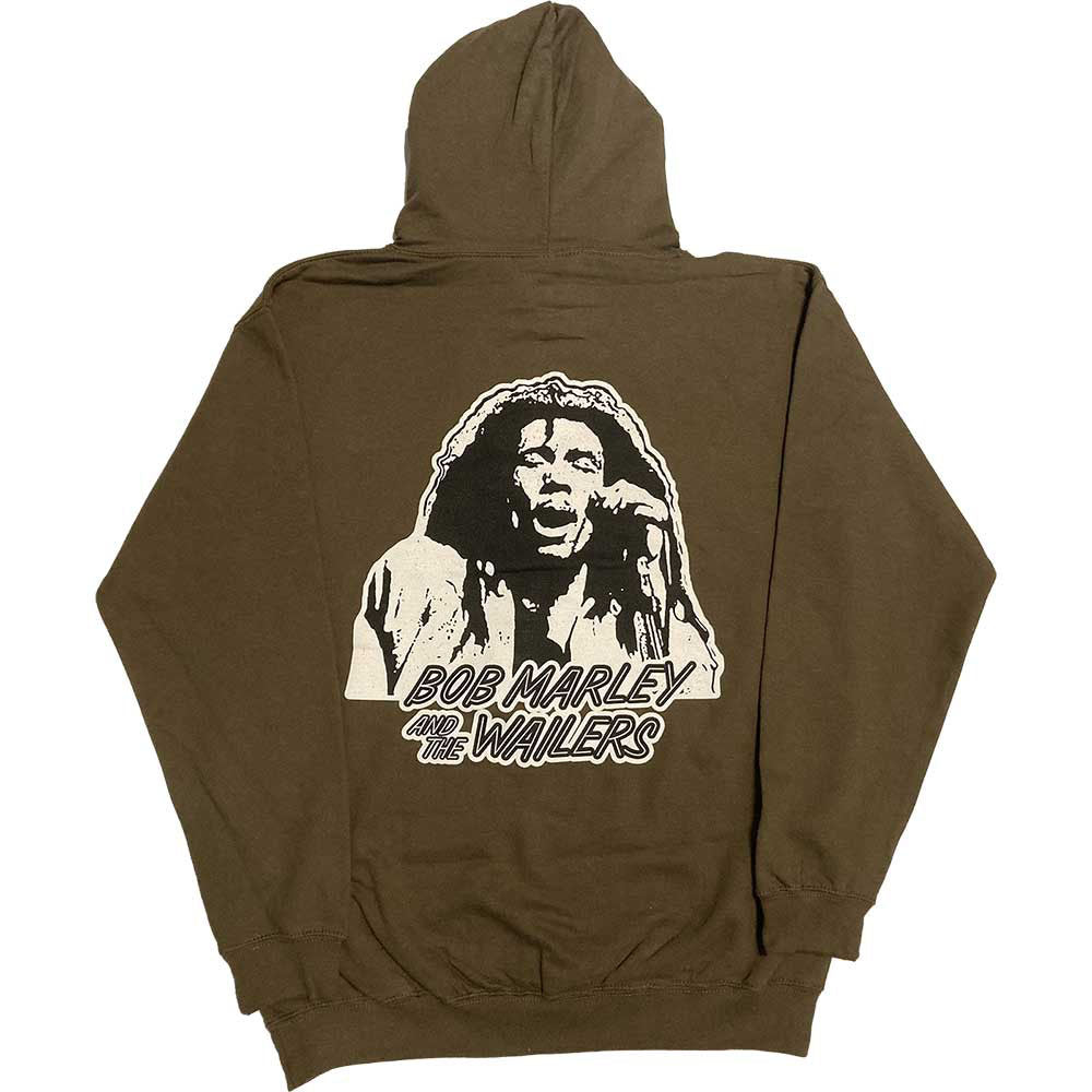Official licensed Bob Marley Unisex Pullover Hoodie featuring the 'One Love Wailers Mic Photo' design motif. High quality Pullover Hoodie available in a green colourway.