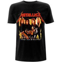 An official licensed Unisex Tee featuring the Metallica 'Garage Photo Yellow' design motif. This high quality Tee is available in a black colourway.