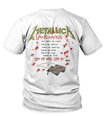 An official licensed unisex soft-style cotton Tee featuring the Metallica 'One Landmine' design motif. This high quality t-shirt is available in a white colourway.Here's some more stuff you might like: