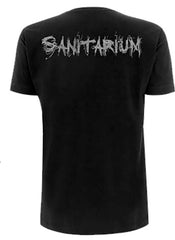 An official licensed unisex soft-style cotton Tee featuring the Metallica 'Sanitarium' design motif. This high quality t-shirt is available in a black colourway.