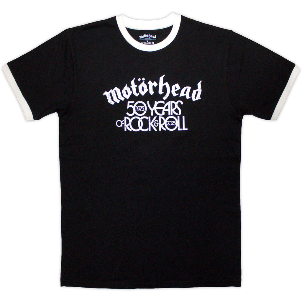 Official licensed Motorhead - 50 Years Text Lock Up - Black Ringer t-shirt