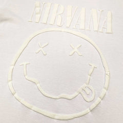 An official licensed Nirvana Unisex T-Shirt featuring the 'White Smiley' design motif. This high quality T-Shirt is available in a white colourway.