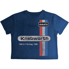 An official licensed Oasis - Knebworth '96 - Ladies Navy Blue Crop Top t-shirt