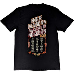 An official licensed Nick Mason's Saucerful of Secrets Unisex T-Shirt featuring the 'Echoes European Tour 2022' design motif. This high quality T-Shirt is available in a black colourway.