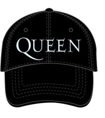 An official licensed unisex Cotton Baseball Cap featuring the Queen 'Logo' design motif. This high quality headwear is available in black