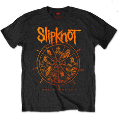 An official licensed unisex Standard Cotton Tee featuring the Slipknot 'The Wheel' design motif. This high quality t-shirt is available in a black colourway.Here's some more stuff you might like:
