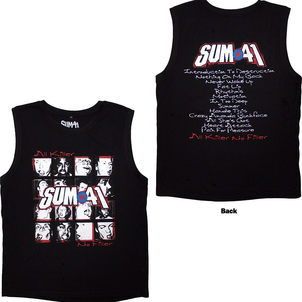 An official licensed Sum 41 - All Killer No Filler Tracklist - Black Sleeveless Tank t-shirt