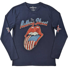 An official licensed The Rolling Stones Unisex Long Sleeve T-Shirt featuring the 'US Tour '78' design motif. This high quality Long Sleeve T-Shirt is available in a navy blue colourway.