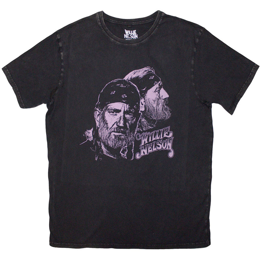 An official licensed Willie Nelson - Purple Graphic - Stone Washed Black T-shirt