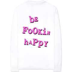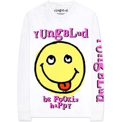 An official licensed Unisex Long Sleeved Tee featuring the Yungblud 'Raver Smile' design motif. This high quality garment is available in a white colourway.