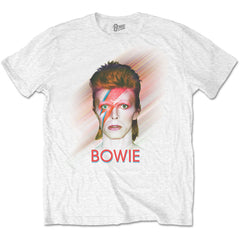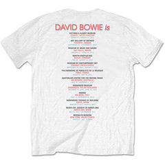 An officially licensed Unisex soft-style styled cotton Tee featuring the David Bowie 'Bowie Is' design motif. This high quality garment is available in a white colourway.