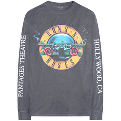 An official licensed soft-style cotton Long Sleeved Tee featuring the Guns N' Roses 'Hollywood Tour' motif. This high quality garment is available in a charcoal grey colourway.