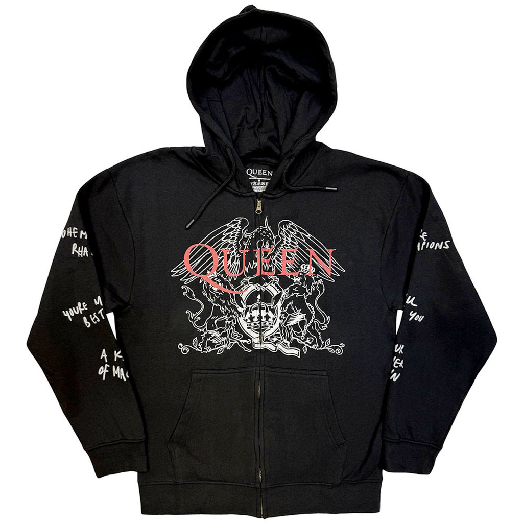 Queen - Logo & Crest Outline - Charcoal Grey Zipped Hooded Sweatshirt
