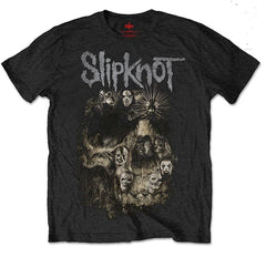 An official licensed unisex soft-style cotton Tee featuring the Slipknot 'Skull Group' design motif. This high quality t-shirt is available in a black colourway.