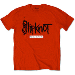 An official licensed soft-style cotton Unisex fit tee featuring the Slipknot 'WANYK' design motif. This high quality t-shirt is available in a red colourway.