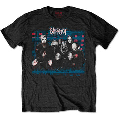 An official licensed unisex soft-style cotton Tee featuring the Slipknot 'WANYK Glitch Group' design motif. This high quality t-shirt is available in a black colourway.