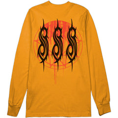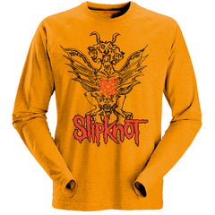 An official licensed Slipknot Unisex Long Sleeved Tee featuring the 'Winged Devil' design motif. This high quality t-shirt design is available in the orange colourway.