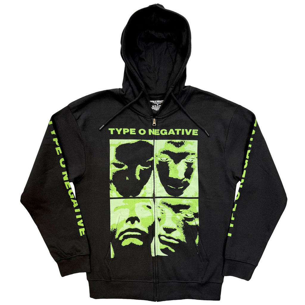 An official licensed Type O Negative - Faces - Black Zipped  Hooded Sweatshirt